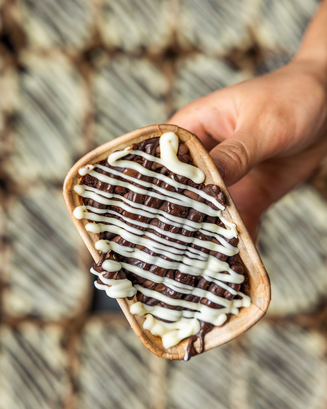 Milk chocolate, white chocolate chips in a dark chocolate fudgy brownie.